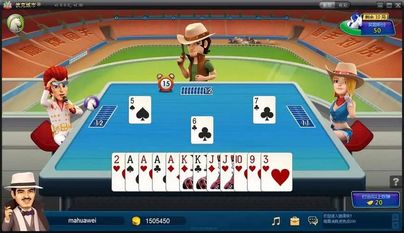 目标: 每一位玩家都想方法将自己手中的牌尽量全打出去。游戏结束,谁先打完所有的牌则为赢者。