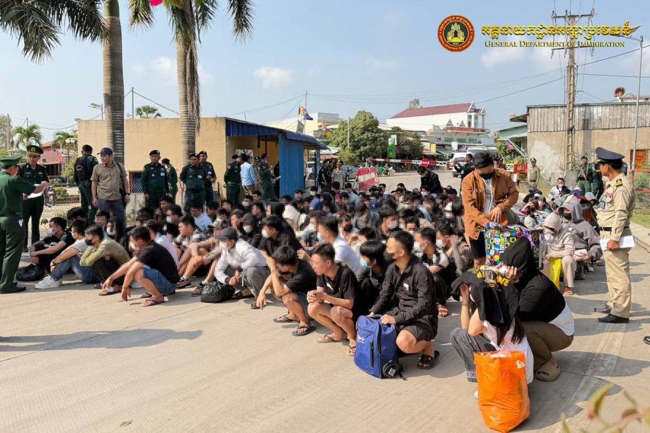 据移民总局通报,这批人员中包括32名女性,此前分别在波罗勉省和特本克蒙省被警方查获。经核实,这些人员均未持有合法护照,涉嫌在柬埔寨境内非法居留及从事非法务工。