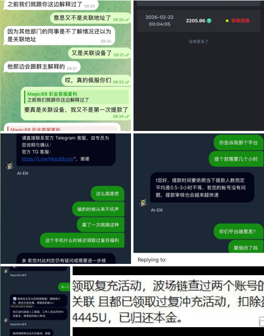 各位玩家注意了!Magic88哈希 就是个黑平台,大家千万别去!赢钱就找借口不给出款,设备关联纯属扯淡!