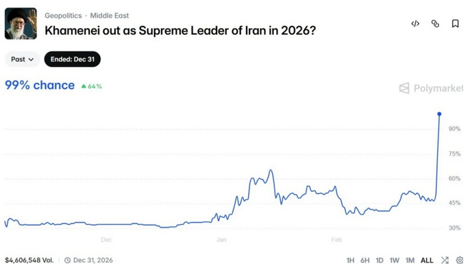 随着美军对伊朗发动袭击、伊朗最高领袖哈梅内伊去世的消息传出,预测市场上关于其下台的合约交易量飙升至5450万美元。Kalshi在消息确认后紧急暂停该市场,并全额退还费用,但平台上一批提前押注的交易者已斩获数百万美元利润。说白了,就是有人靠提前知道消息赚翻了,也有人赌错方向一天亏掉640万。这一事件引发美国政界和学界对预测市场监管的强烈质疑,内幕交易指控再度甚嚣尘上。