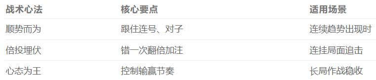 快3节奏快,容易让人冲动失控。真正的高手懂得“收放自如”,输得起、稳得住,该收手就收手,该出击就出击。在快3攻略 中,心态是决定胜负的关键因素。冷静的心态,能让你在连胜或连败中保持最佳策略执行力。